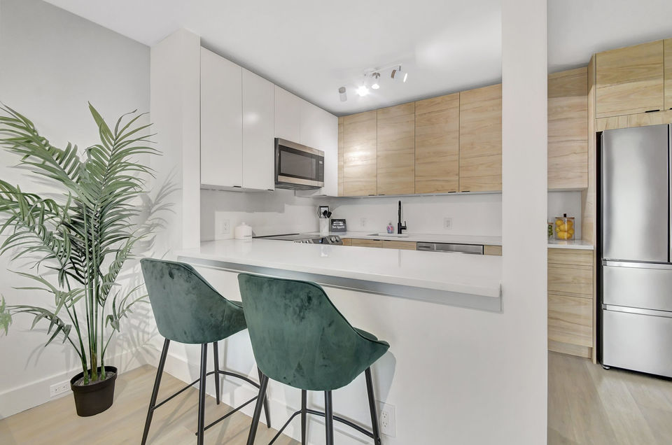 This fully furnished 1-bedroom, 1.5-bath condo is ideal for monthly or seasonal stays. The spacious primary suite offers a king-size bed, premium linens, and an ensuite bathroom with a walk-in shower. The open-concept living area includes comfortable seating, a smart TV, and large windows that fill the space with natural light. The kitchen is bright, clean, and fully equipped with everything you need for cooking at home.